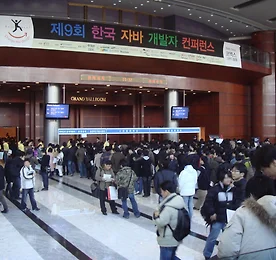 Java 썸네일형 리스트형 제9회 한국 자바 개발자 컨퍼런스에 다녀왔습니다. 삼성동 코엑스 그랜드볼룸에서 열린 제9회 한국 자바 개발자 컨퍼런스에 다녀왔습니다. 주로 컨퍼런스나 세미나는 일찍 가서 등록 확인을 하는데, 오늘은 좀 늦게 갔습니다. 10시 40분경에 행사장에 도착했는데, 어마어마한 수의 사람이 등록 확인을 위해 줄을 서 있었습니다.(0.0) 40분여를 기다려서야 겨우 등록확인을 마치고 교재를 수령했습니다. 이때 이미 지쳐버렸네요 ^^; 이번 컨퍼런스의 모토는 Enjoy Java! Change the World! 였습니다. 작년엔 Developer 2.0이었죠. 이번 컨퍼런스는 총 5개 트랙 30 세션이 진행되었습니다. 작년엔 3개 트랙이었던 것을 기억하는데, 비즈니스에 대한 세션이 눈에 띄었고 이제 더이상 개발자가 코드만 작성해서는 안된다는 근래의 공감대가 트랙 구성.. 더보기 [Link] Robocode Korea Cup 2007 http://www.ibm.com/developerworks/kr/robocode/?ca=dnn-krt 한번 덤벼 봐? 더보기 이전 1 다음